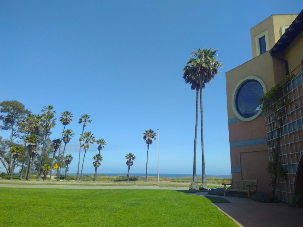 Allerdings ist das Wetter ziemlich durchwachsen – wir haben zwar oft Sonne, aber zwischendurch ist hier der “June Gloom” am Start, wo richtig dicker Nebel vom Ozean aufzieht und die ganze Kueste ueberdeckt. So sieht mein Institut aus, wenn es nebelt: