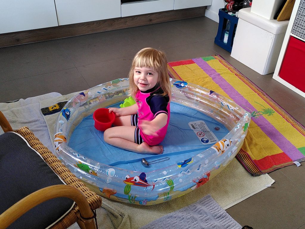 Ich hab letzten Donnerstag alle meine Leute auf der Arbeit wegen Coronavirus ins Home Office geschickt, und wir sind selbst seit Freitag in der selbstgewählten sozialen Isolation (Arbeit von dahim, keine Kita etc.). Kara hat sich gewünscht, dass wir mal an den Strand gehen (ist natürlich eh noch viel zu kalt), deshalb hab ich am Wochenende mit ihr einen Strand in der Küche aufgebaut. Sie fand’s gut!