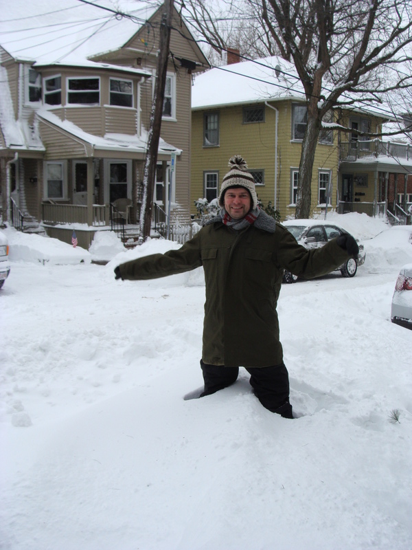 So, der Blizzard ist jetzt offiziell vorbei. Es hat den ganzen Sonntag nicht mehr geschneit, die Busse fahren wieder, und ab morgen solls Tauwetter geben. Na dann. Aber immerhin hatten wir noch ein bisschen Spass im Schnee: