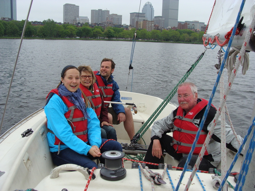Was haben wir noch mit den beiden gemacht? Zum Beispiel waren wir segeln auf dem Charles River. Ich war der Skipper!