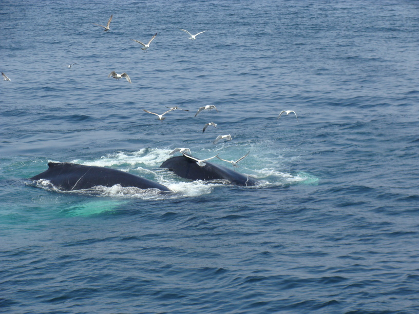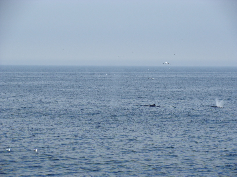 Otto Waalkes ist neulich 65 geworden, und wir waren zum Wale beobachten auf dem Atlantik. Wettermäßig hatten wir einen fantastischen Tag erwischt, es war nie zur falschen Zeit neblig oder kalt oder sonstwie ungemütlich. Hier ist eine Walfontäne aus der Ferne: