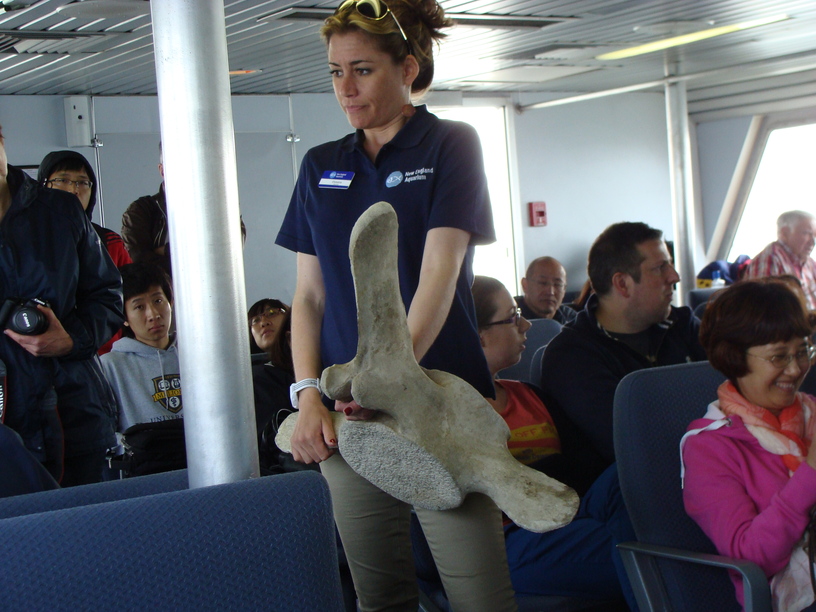 Auf der Rückfahrt führte die Meeresbiologin/Erzählerin den Wirbel eines Pottwals vor. Die sind schon groß, die Viecher…