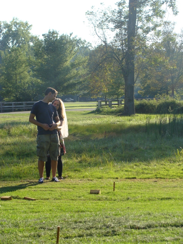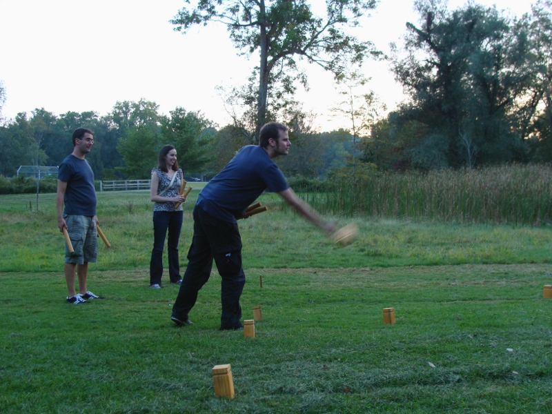 Spaeter am Nachmittag gab es dann Barbecue in einem nahegelegenen Park. Dort wurde bis zur totalen Erschoepfung “Kup” gespielt (dieses Spiel mit den Holzkloetzen), und zwar Team Moritz gegen Team Lauren! Hier betrachtet Moritz kritisch Tobis Angriffswurf: