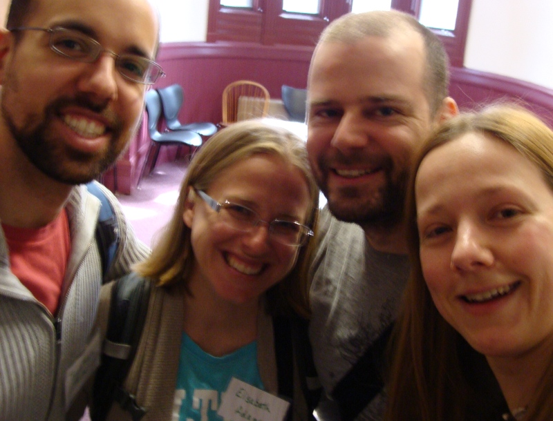 Bei dieser Diskussionsrunde ging es um “Worldbuilding”, also wie man Fantasy-Welten erfindet. Der Mann rechts auf der Buehne mit den Strubbelhaaren ist Patrick Rothfuss, dessen Buecher Tobi und ich ziemlich cool finden. Der hat auch eine Autogrammstunde im Harvard Bookstore gegeben, und Tobi und ich haben uns seine Buecher signieren lassen. Es waren auch diverse Autorinnen da, z.B. die schlagfertige M.L. Brennan und Urgestein Jo Walton. Bei deren Diskussionsrunde sass ich aber ganz vorne im Saal, und da war’s mir zu peinlich, ein Foto zu machen.