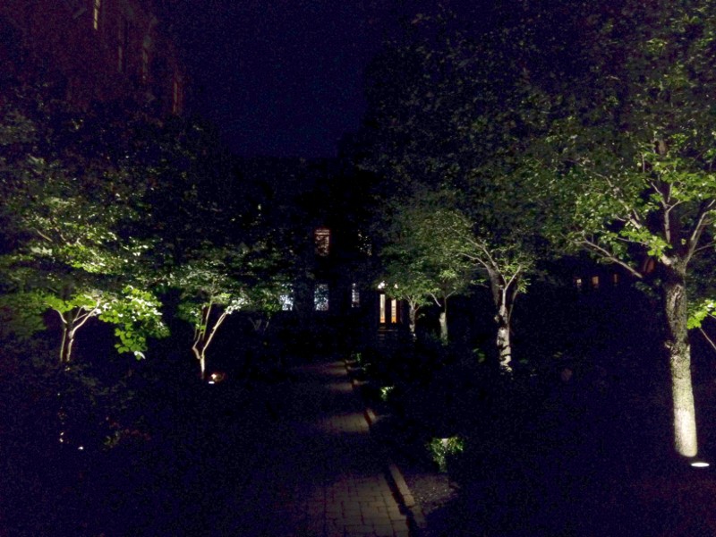 Oh, und der Vorgarten vor unserem Mietshaus ist echt huebsch, mit so Beleuchtung: