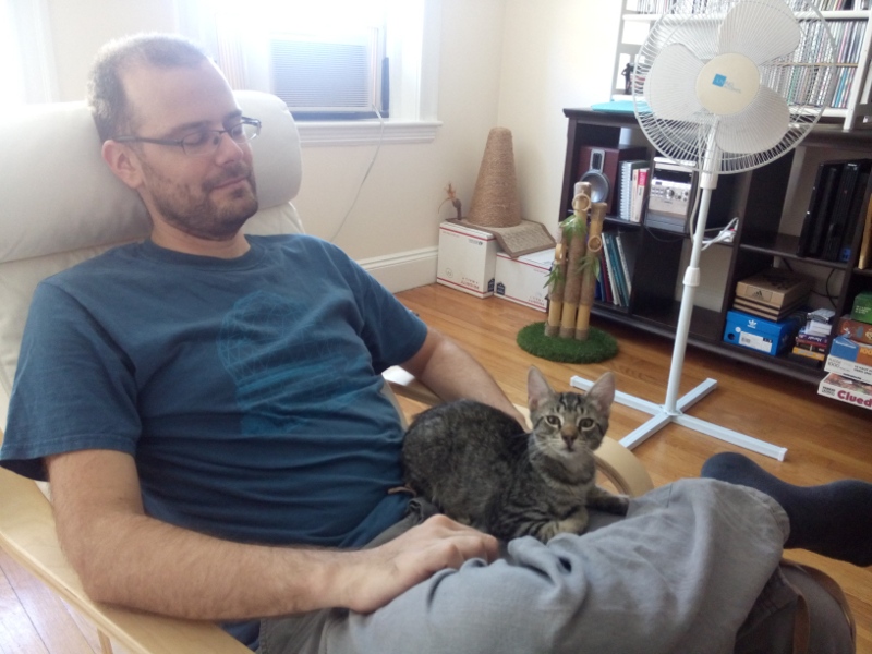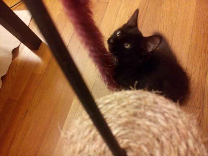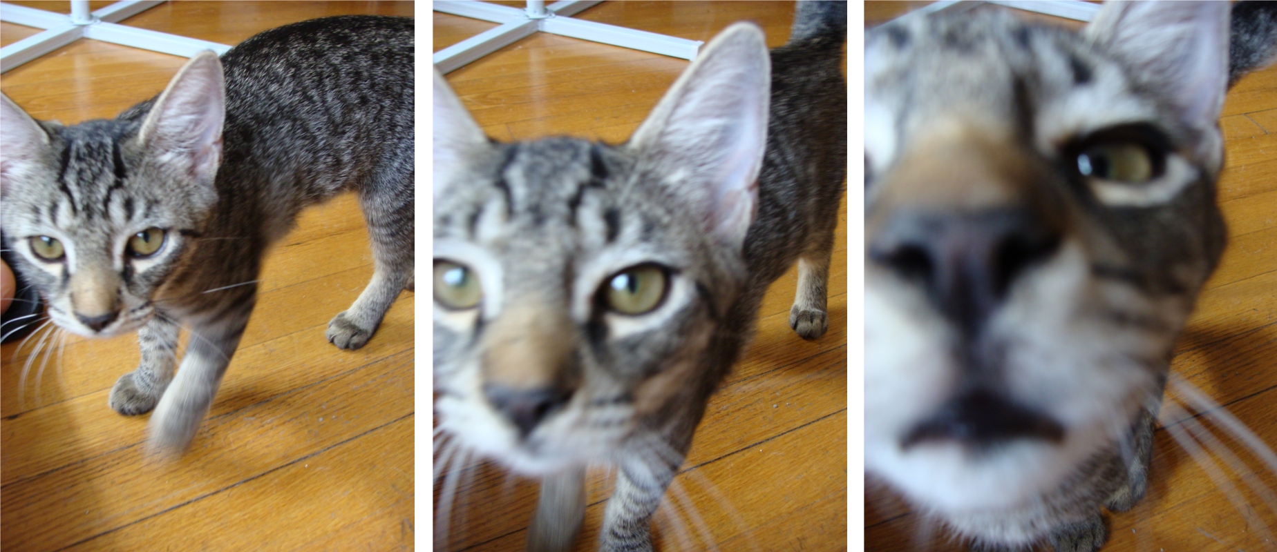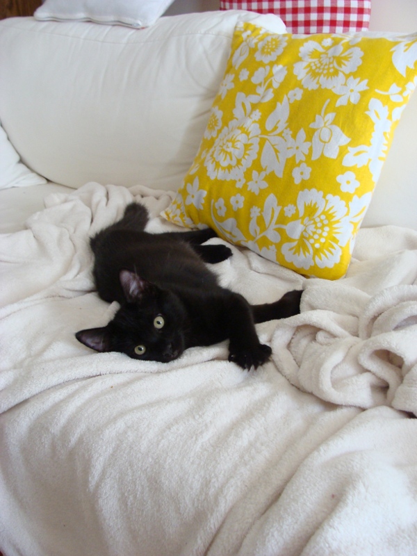 Jetzt wohnen unsere kleinen Katzen schon 2 Monate bei uns, und sie sind fast schon so gross wie richtige Katzen! Verrueckt! Daher ist es jetzt hoechste Zeit, dass ich euch eine Trilliarde Katzenfotos von Mando und Kazoo zeige. Also: