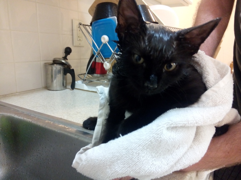 Wobei Kazoo es nicht so ganz toll fand, als wir ihn neulich baden mussten (er hatte sich naemlich einen Ausschlag im Tierheim geholt):