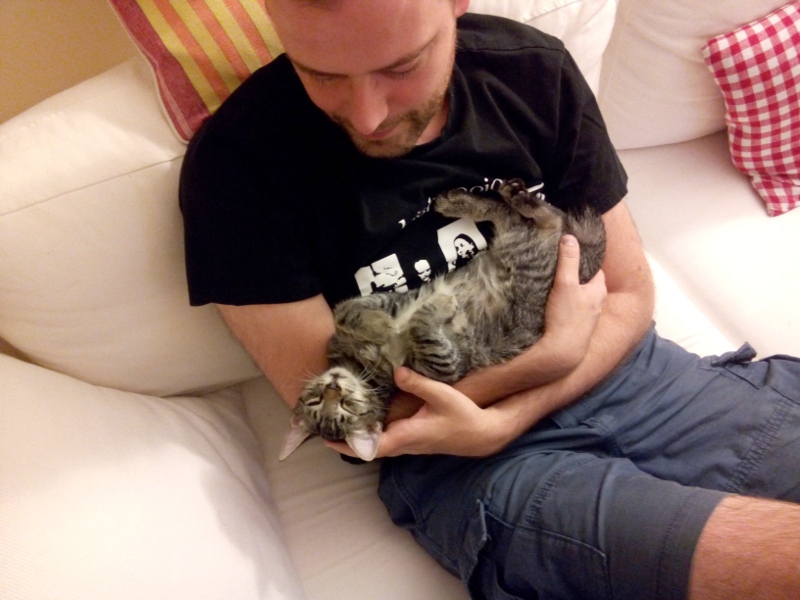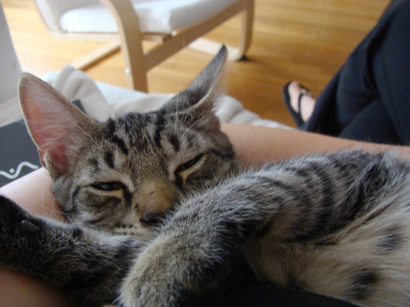 Und hier in diversen superniedlichen Schlafposen. Mando schlaeft besonders gerne bei Leuten auf dem Arm: