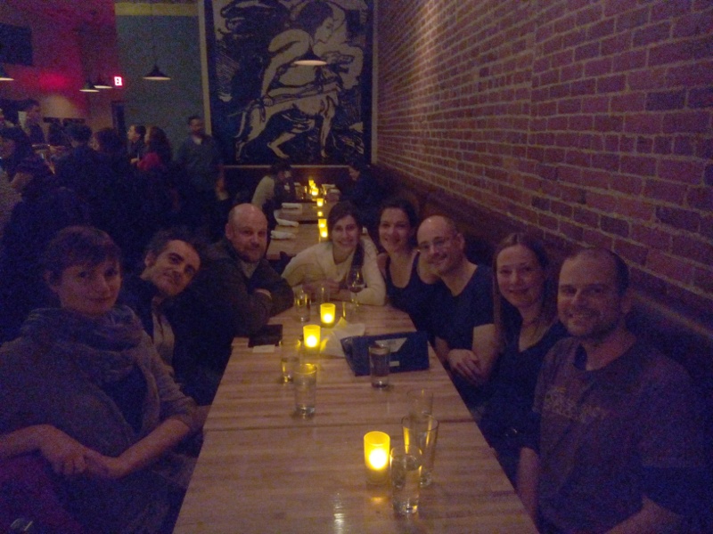 Hier war dann auch schon wieder ganz schoen was los: mein Buero-Kollege Angelo (auf dem Bild links neben mir) hat seinen kurzfristigen Abschied gefeiert – er wird fuer ein paar Monate nach Italien gehen, und danach hoffentlich bald wieder hier bei uns am CfA sein.