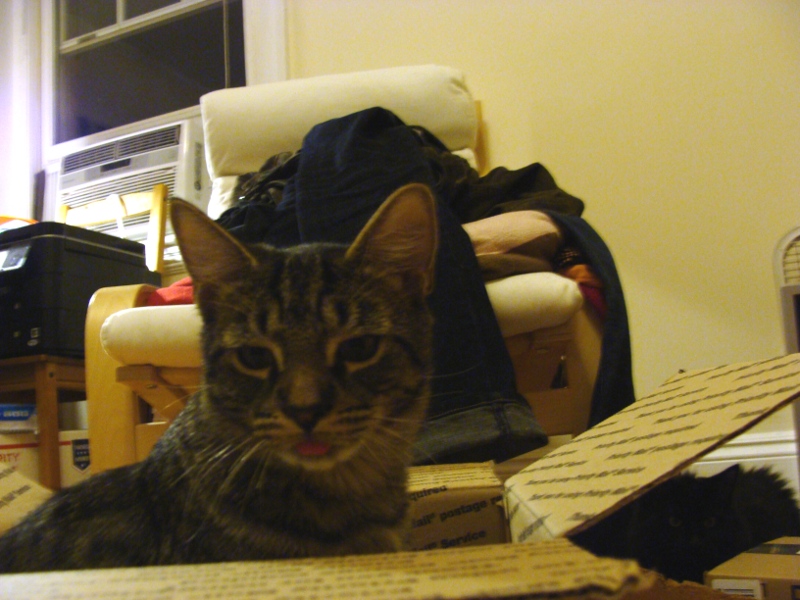 Bett und Pappkarton: