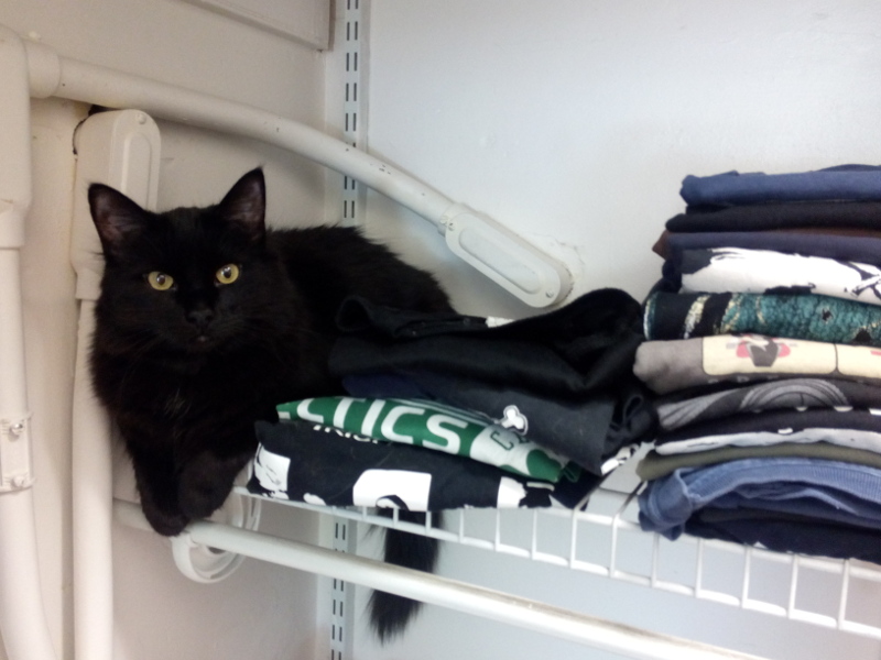 Kazoo im Kleiderschrank (zum Glueck sind das Tobis T-Shirts, nicht meine):