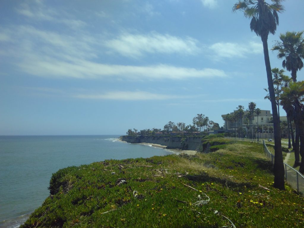 Das Institut, das Kavli Institute for Theoretical Physics (KITP), liegt fast direkt am Meer. Von meinem Buero aus guckt man ueber die Steilkueste in 30 Metern Entfernung auf den Ozean:
