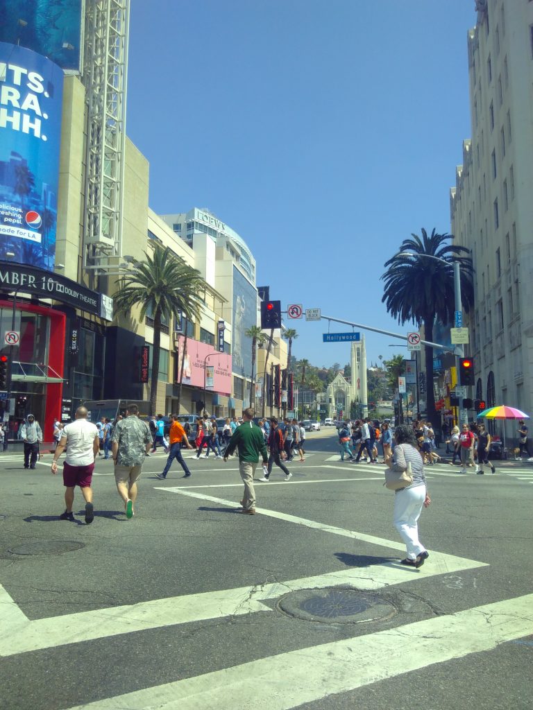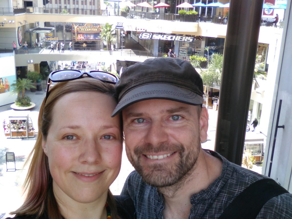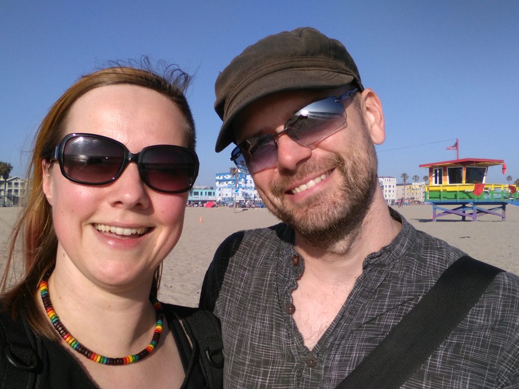 Einen Samstag lang hat Mom alleine auf Kara aufgepasst, und Tobi und ich sind einen Tag mit dem Mietauto nach L.A. gefahren. Das ist etwa 2 Stunden weit weg. Wir waren am Walk of Fame, dann Mittagessen auf dem Santa Monica Boulevard, wo ich ein *fantastisches* veganes Sandwich mit “smoked tempeh” hatte, dann im Getty Museum, und dann abends noch am Venice Beach. Es ware gerade Pride Parade, als wir dort waren, d.h. es war ueberall Stau, aber das ist in L.A. wohl sowieso immer so. Aber daher waren ueberall Sachen in Regenboenfarben angemalt, sogar die Lifeguard-Haeuschen am Strand.