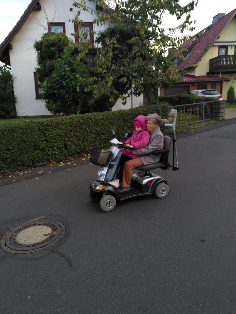 Mit Mom und Kara und mir. Kara ist mit Oma mit dem Rentnermobil gefahren und durfte selber mal Gas geben!