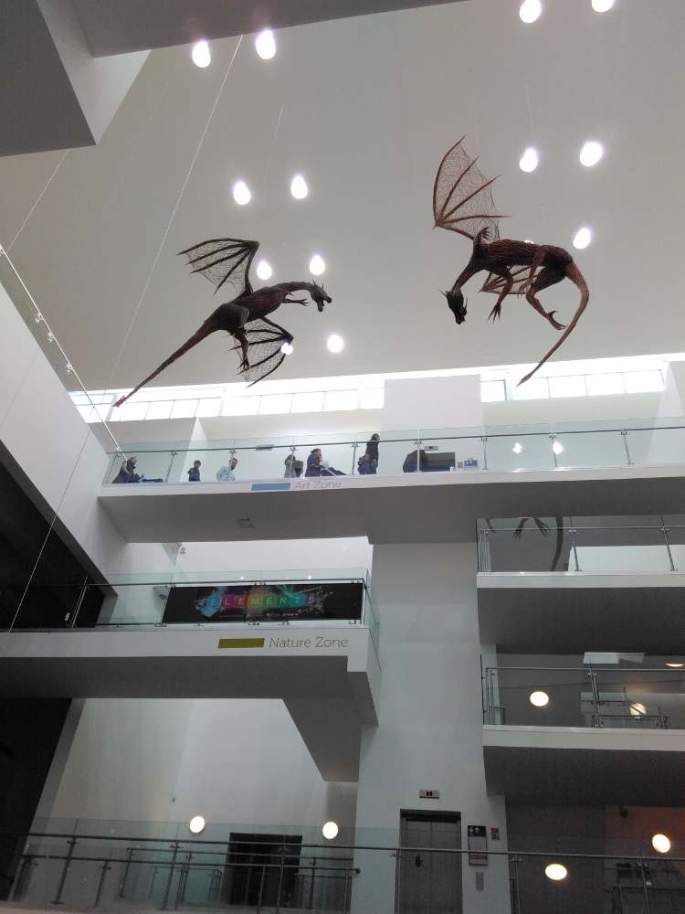 Neulich waren wir im Ulster Museum, das ist bei uns gleich um die Ecke. Allerdings waren wir etwas spaet dran, deshalb haben wir uns nur ins Museumscafe gesetzt und Kucken gegessen, und einmal im Foyer die Drachenskulpturen angeschaut.