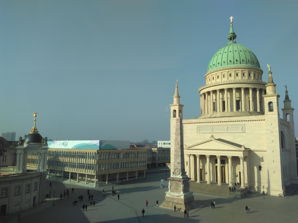 Leider soll die Fachhochschule bald angerissen werden, damit alles schoen zusammenpassend nett und adrett und historisch aussieht… Dabei sieht die Nicoleikirche und der Platz drumrum jetzt schon echt protzig aus: