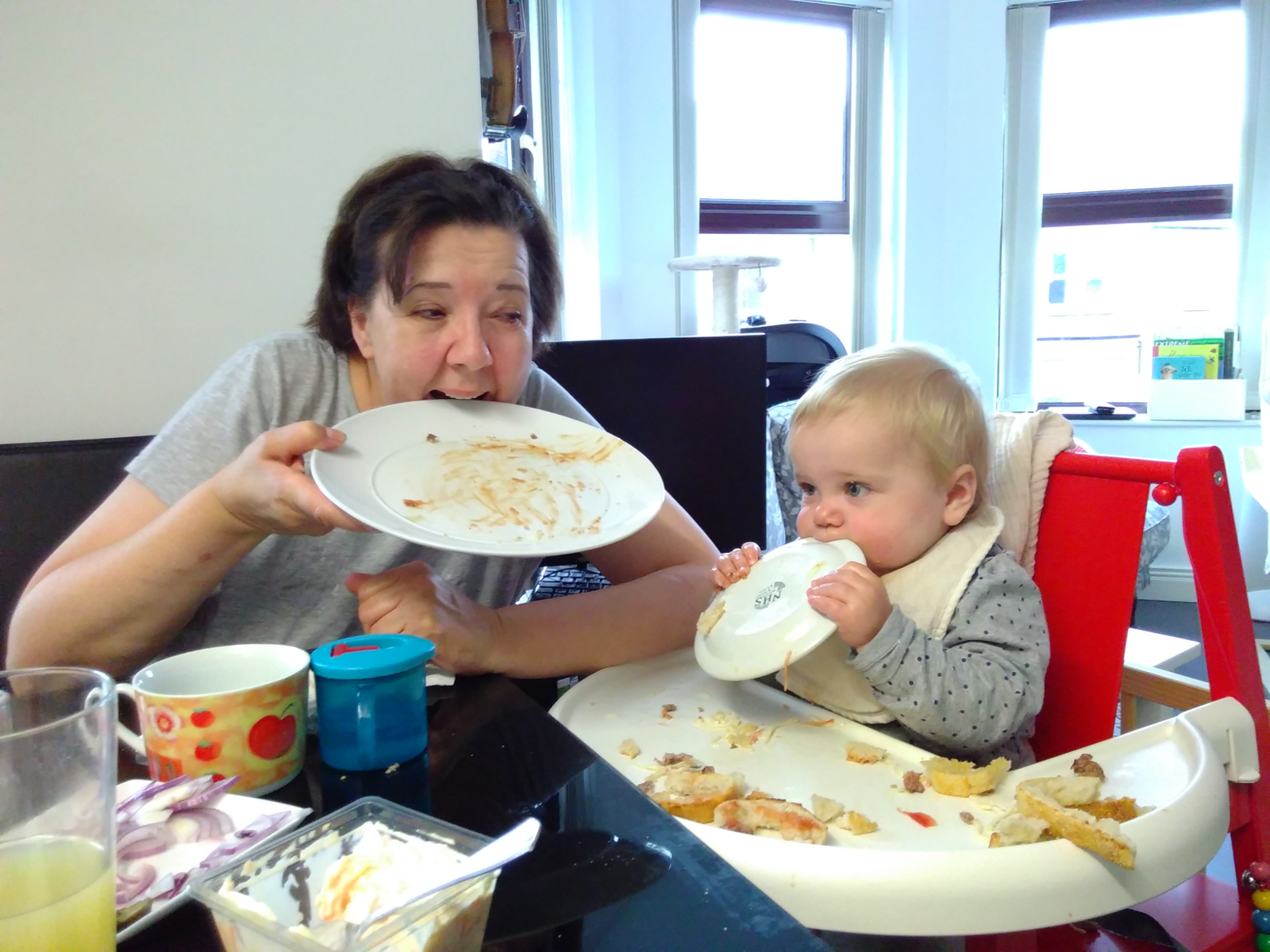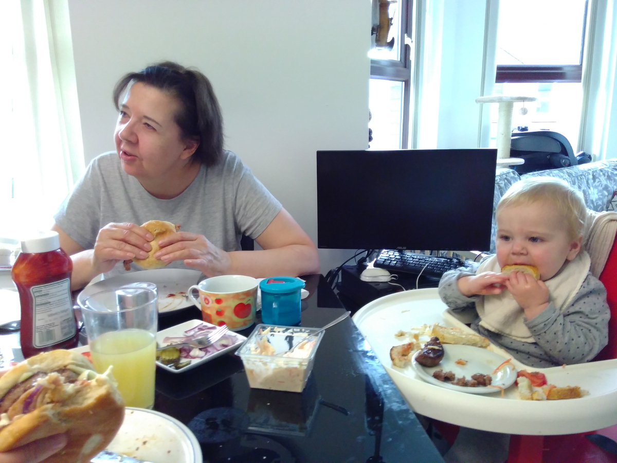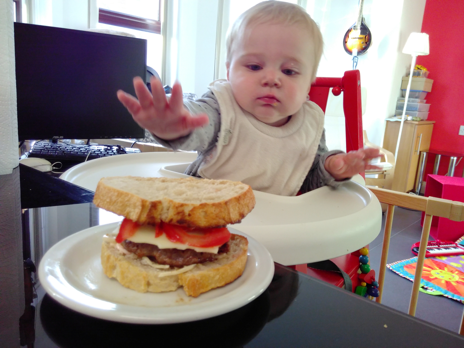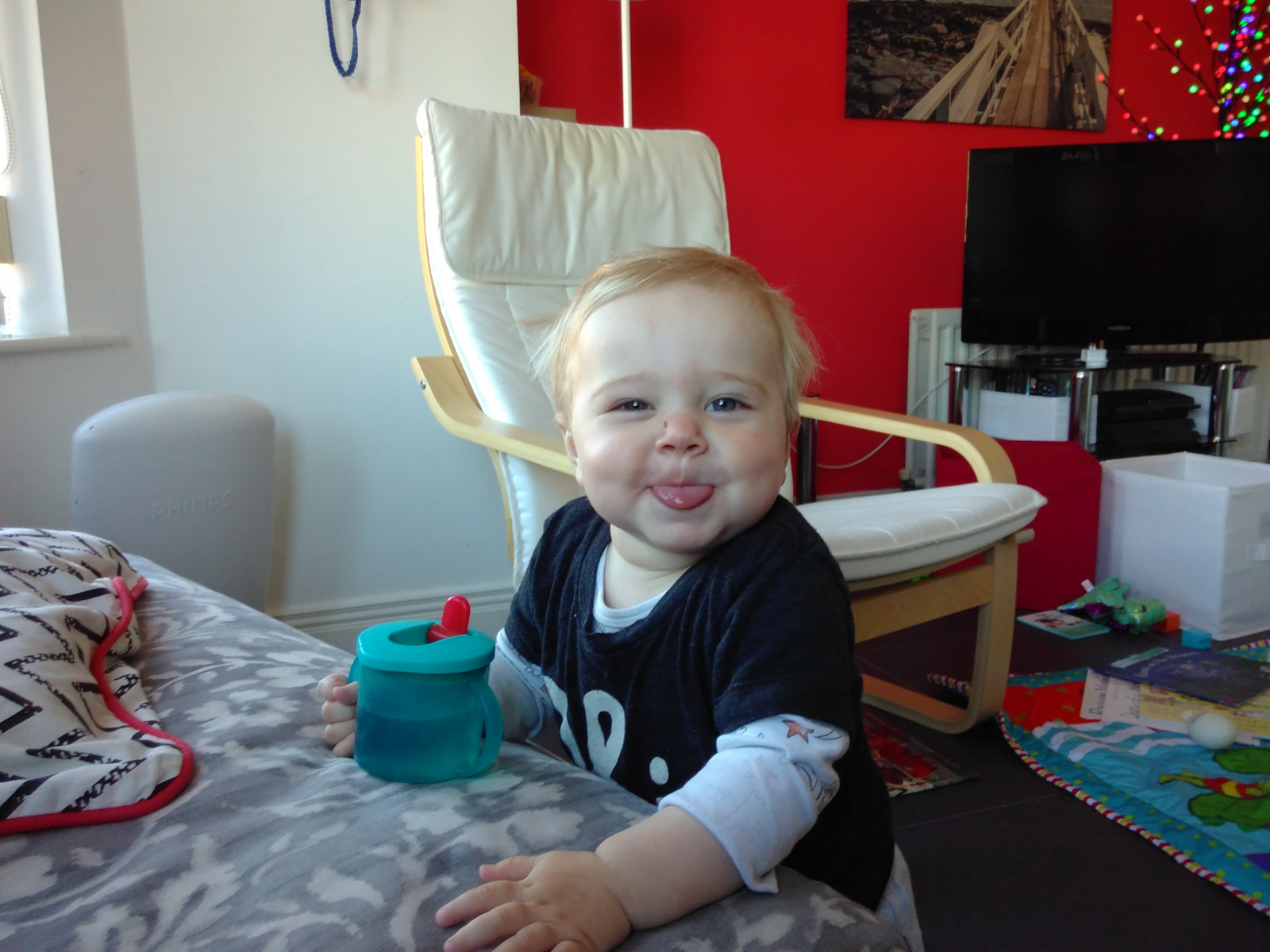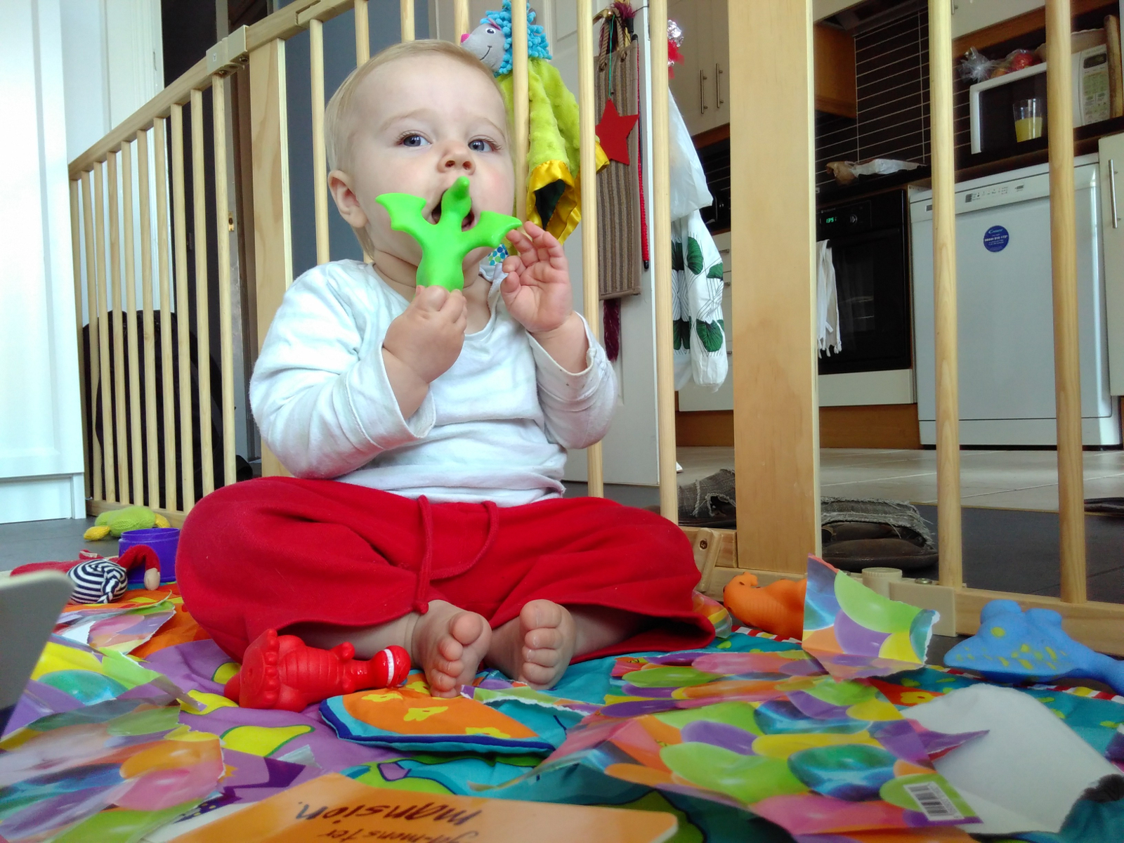 Was war sonst so? Kara “isst” jetzt gerne die Sachen, die wir auch essen. Heisst, sie steckt sie in den Mund, speilt damit, und spuckt sie wieder aus. Aber es macht ihr Spass:
