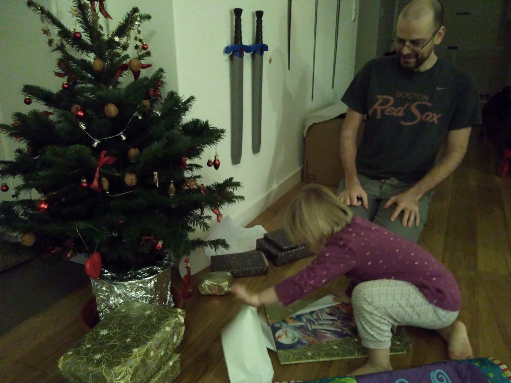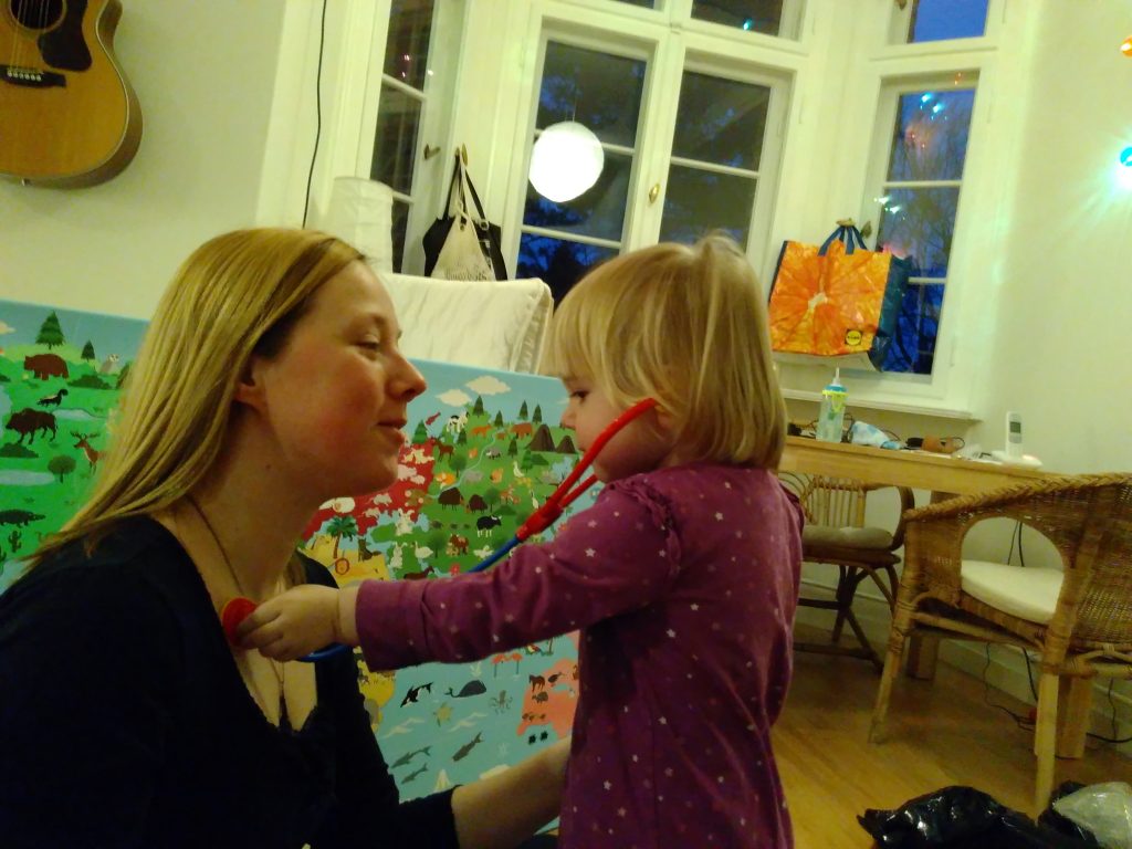 Und Tobi und ich spielen ganz gerne mal zusammen “Darksouls 2” auf der Playstation, wenn Kara gerade schlaeft. Wenn sie nicht schlaeft, kann man sie zur Not auch mal 2 Minuten mit einem altem Controller beschaeftigen: